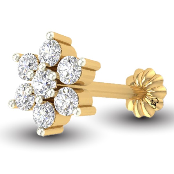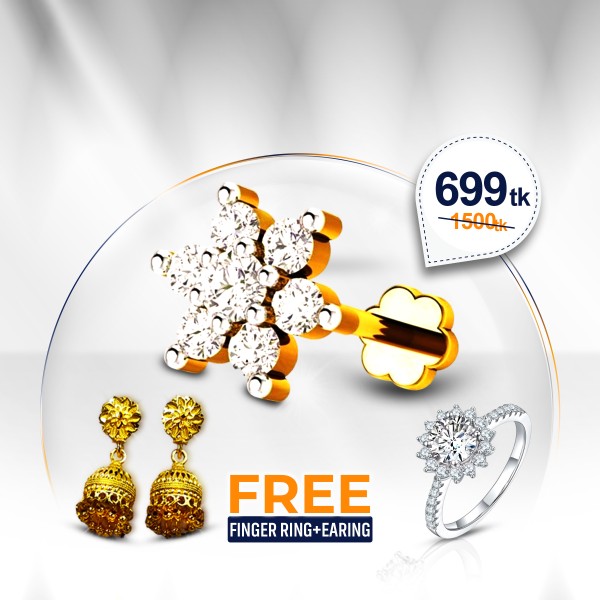 7 STONE TRADITIONAL 18K GOLD DIAMOND CUT NOSEPIN + FREE FINGER RING + FREE EAR RING